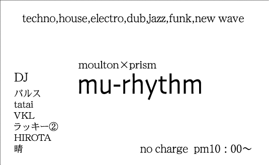 PM 10 START フライヤー持参 ¥1,500(W1D) 当日¥2,000(W1D)