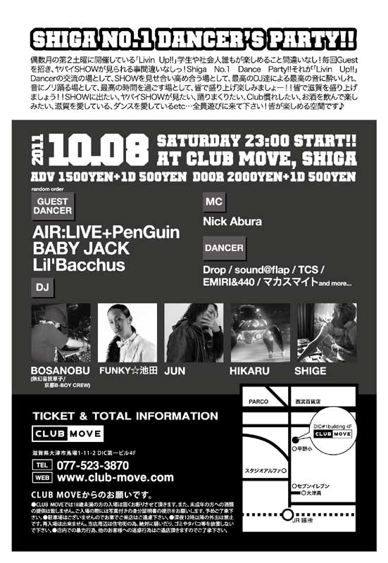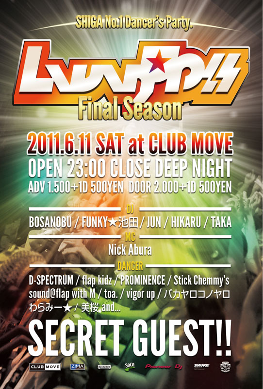 DJ : YAMAKOH / HIRO / YONTEN / S-RYO(from兵庫) / KANTA(from京都)