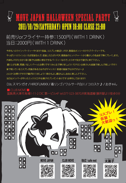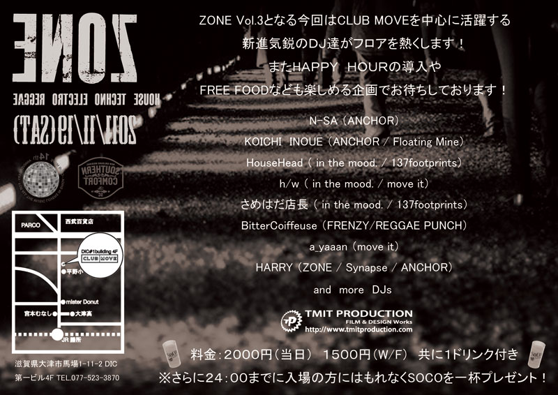 他にはCLUB MOVEで使用出来るドリンクチケットや、まさかの-現金-が当たるかも??そして滋賀県初!!話題の株式会社TENGA(テンガ)さんにご協賛頂きサンプルの配布をさせて頂きます。限定数ですので無くなり次第終了です。前売りチケットには1ドリンク & SoCoが飲めるチケット1枚 & ガチャガチャも1回付きで大変お得になってます。勿論、振る舞い酒もありで大いに飲んでMOVEの14周年をみんなで祝いたいと思います。是非、是非お越し下さーい!!